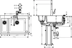Hansgrohe Abwäschen – Küchenset – Spültisch + Spültischarmatur C71-F765-10, Edelstahl 43203800