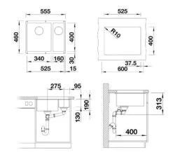 Blanco Subline 340/160 – Silgranitspüle, 555×460 Mm, Spülbecken Rechts, InFino, Soft Weiß 527163
