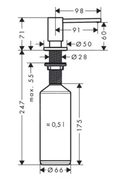 Axor Uno – Spülmittelspender, 500 Ml, Schwarz Chrom Gebürstet 42818340