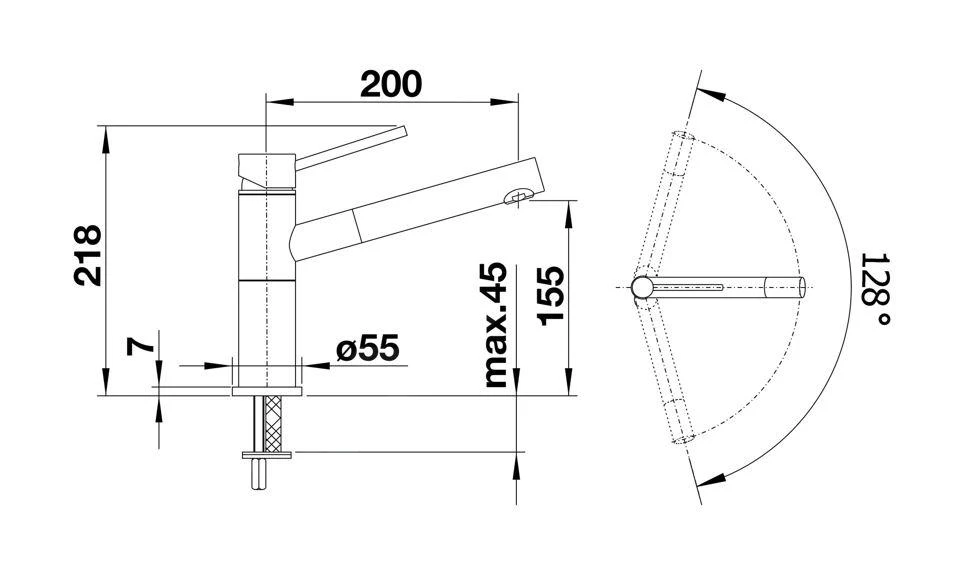 - Armaturhöhe: 218 mm