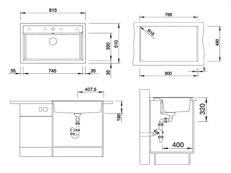 - Ablauf 3 1/2, Siphon mit Abzweigung zur Spülmaschine
