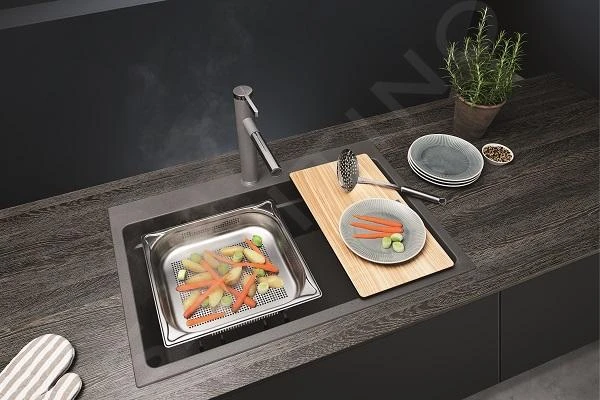- die integrierte Stufe bildet eine weitere Funktionsebene im Inneren der Spüle
