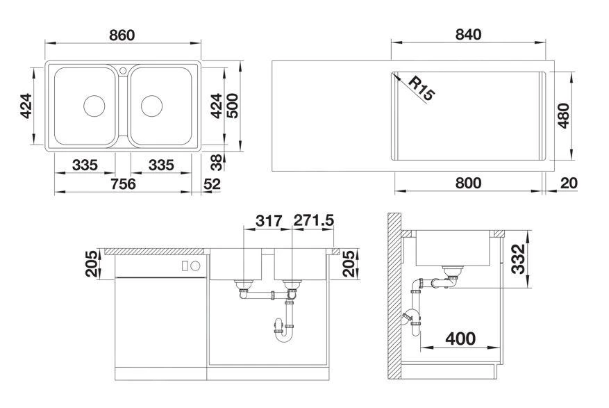 - Tiefe (Spüle): 205 mm