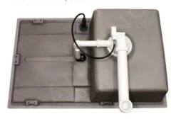 Bestandteil der Verpackung ist ein Ablaufset, ein 3 1⁄2 “ Siebkorbventil und ein Siphon mit Abzweigung für einen Geschirrspüler.