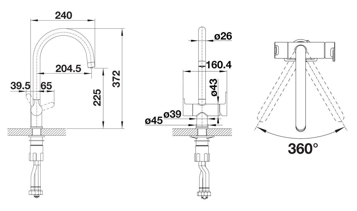 - Hebelbetätigung – Kalt- und Warmwasser rechts, gefiltertes Wasser links
