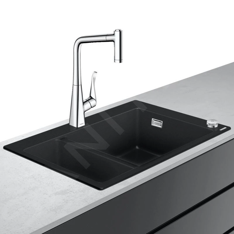 Hansgrohe Abwäschen – Set – Spültisch + Spültischarmatur C51-F635-04 Select, Graphitschwarz / Verchromt 43215000