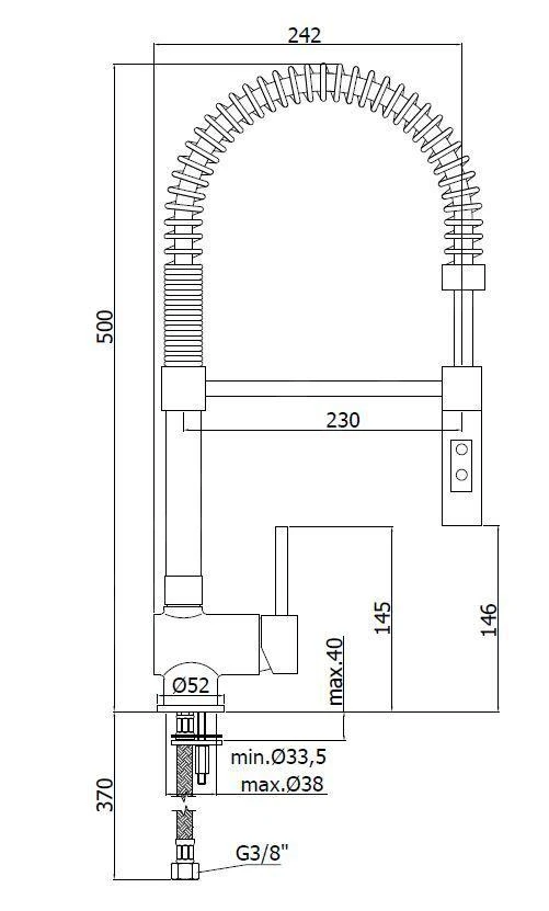 - Auslauflänge 230 mm, Komfortzone 146 mm